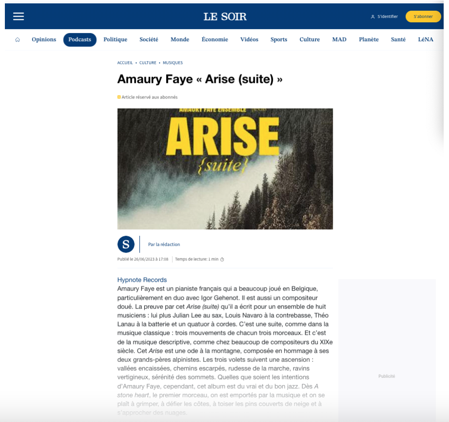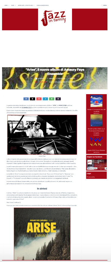ARISE est un petit miracle d’écriture jazz, conçu, composé, assemblé par un Amaury FAYE sous influence. Cette œuvre singulière a tout d’un accomplissement. Et parce qu’elle a infusé dans l’histoire familiale, elle est peut-être de celles qu’un artiste ne signe qu’une seule fois dans sa carrière, on verra bien. A tout le moins elle ne laisse aucun doute sur l’identité forte d’un musicien-auteur, d’un artiste complet.